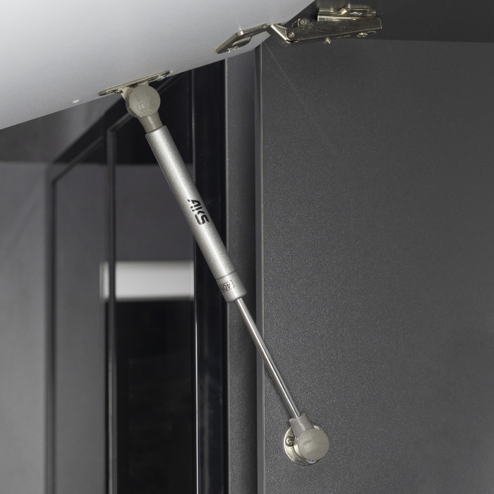 Подъемний механизм газовый (газлифт) для верхней базы кухни представляет собой трубку с газом и штоком и системой уплотнителей и пыльников. Есть в нескольких мощностях от 40 до 150 Ньютонов. Обеспечивает открытие фасада до верхней точки. Комплектация: подъемник двери - 1 шт., крепление для двери - 1 шт., крепление для корпуса - 1 шт., саморезы d 3,5х13 мм - 5 шт.