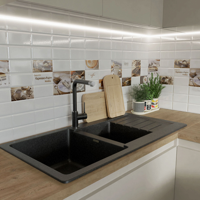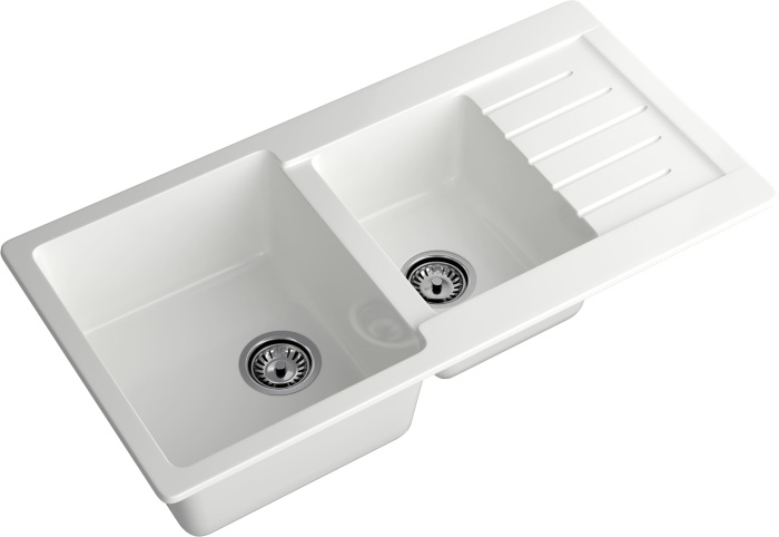 Мойка 980*510 прямоугольная двухчашевая Гранфест PRACTIK белый 980КL
