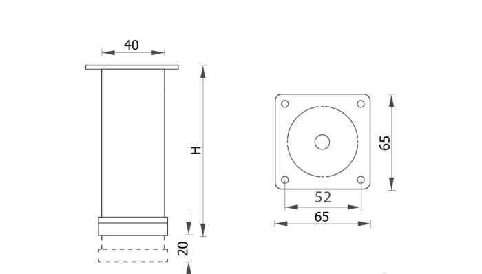 Опора 222 регулируемая металлическая, Н100мм, хром JET