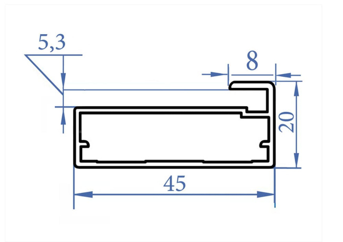 Алюминиевый рамочный профиль под стекло. Лицевая часть прямая 8 мм.