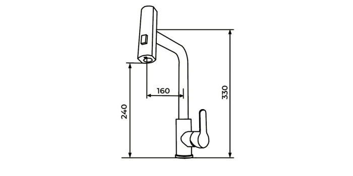 Смеситель с высоким изливом переменной высоты: насадка излива поворотная, от 240 мм до 320 мм высотой над уровнем столешницы/мойки (полная высота смесителя от 330 мм до 370 мм). Смеситель выполнен из нержавеющей стали в декорах Satin, Graphite, повторяющим декоры моек Prodigy.