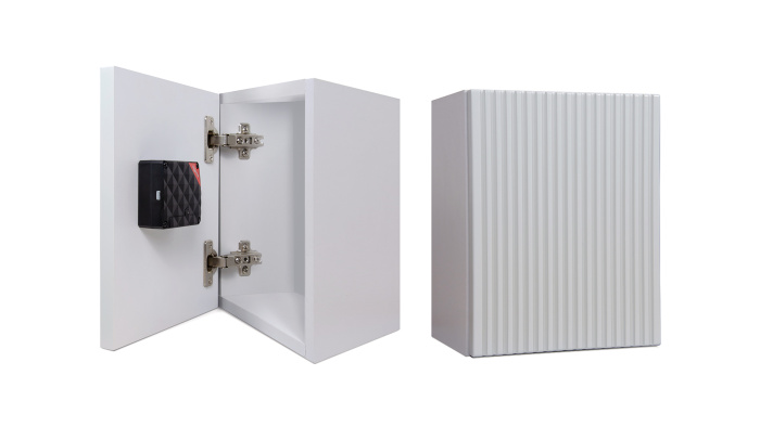 Электронный замок скрытого монтажа для фасадов из плитных материалов и массива стандартной или увеличенной толщины до 40 мм.