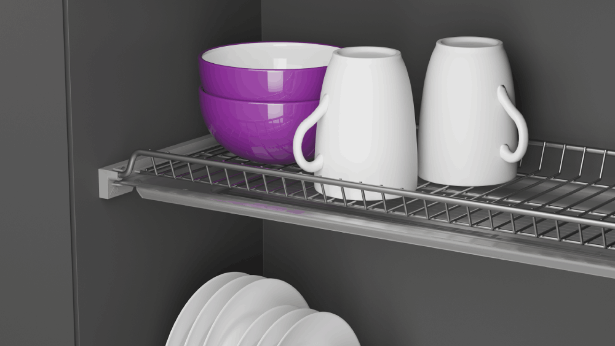Оптимальное расстояние между прутьями позволяет использовать каждый сантиметр пространства, обеспечивая надежную фиксацию как для объемных тарелок, так и для изящных чашек.