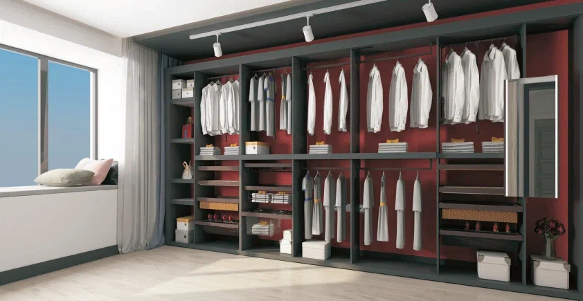 Эксклюзивная серия выдвижных полок и корзин для организации пространства гардеробных шкафов Unihopper Glass NAKA.